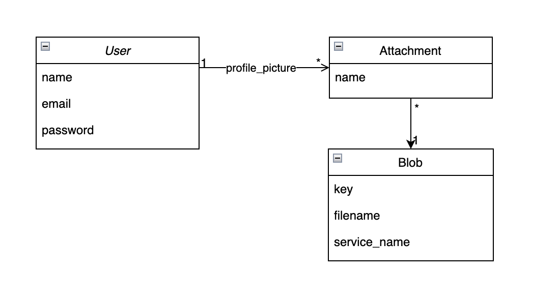 The way Active Storage works is by adding a new table to the database to store references to all uploaded objects across all application models. It includes a polymorphic belongs_to association, so it can be associated with any other model:
