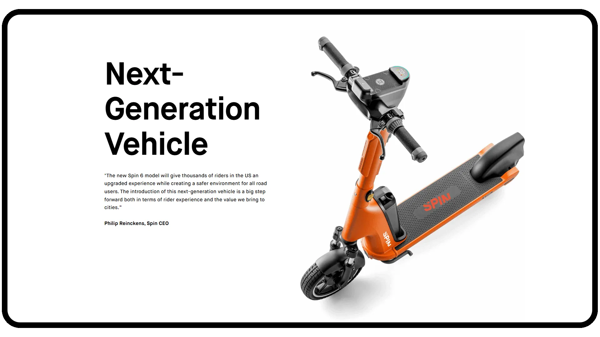 Spin es una empresa de bicicletas eléctricas y scooters eléctricos. Tiene su sede en San Francisco y fue fundada como una start-up en 2017, lanzándose como un sistema de compartición de bicicletas sin estaciones controlado por una aplicación móvil para reservas.