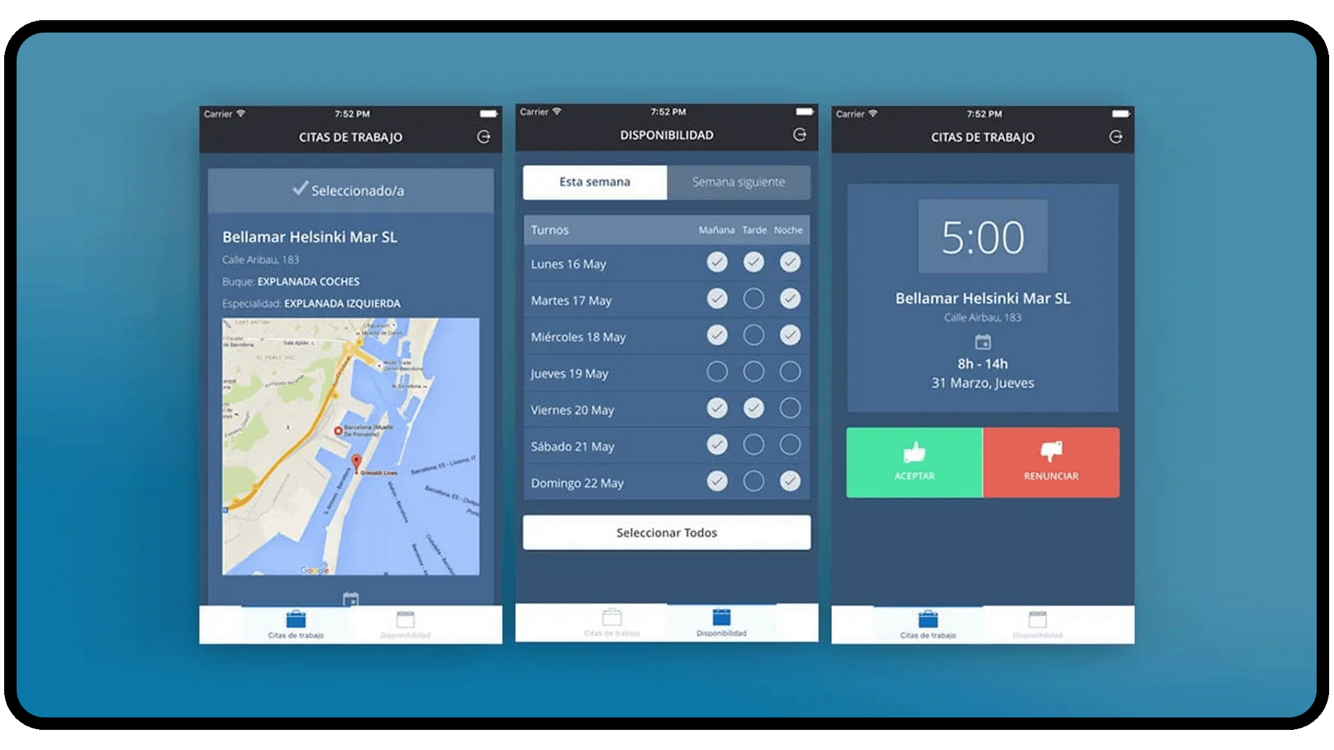 As we have just seen in the previous section, DPL need to know the availability for each worker, in order to assign them to jobs. Also, they need a way to send offers to workers and notify them when they are selected, and that's why we decided to use a mobile app.